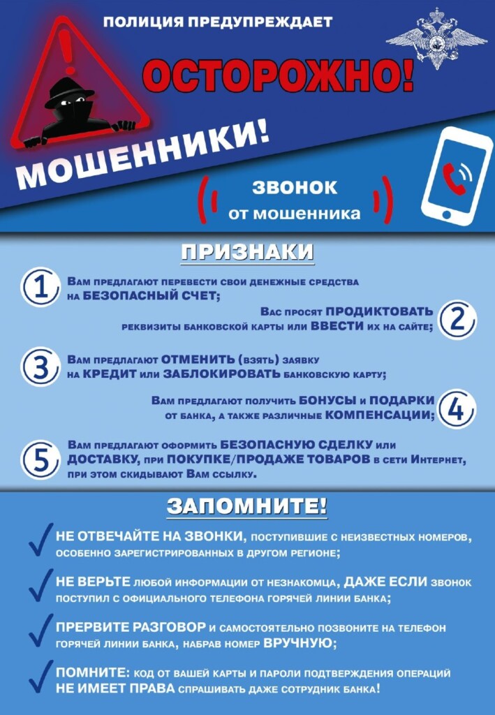 ✅ Проверяйте всю информацию самостоятельно: если звонят якобы сотрудники банка или правоохранительных органов, повесьте трубку и сами перезвоните в официальную службу поддержки вашего банка или учреждения.